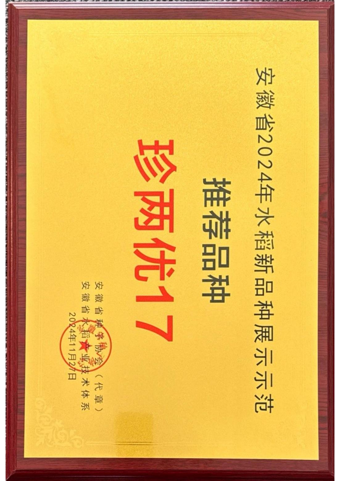 安徽省2024年水稻新品種展示示范推薦品種-珍兩優17
